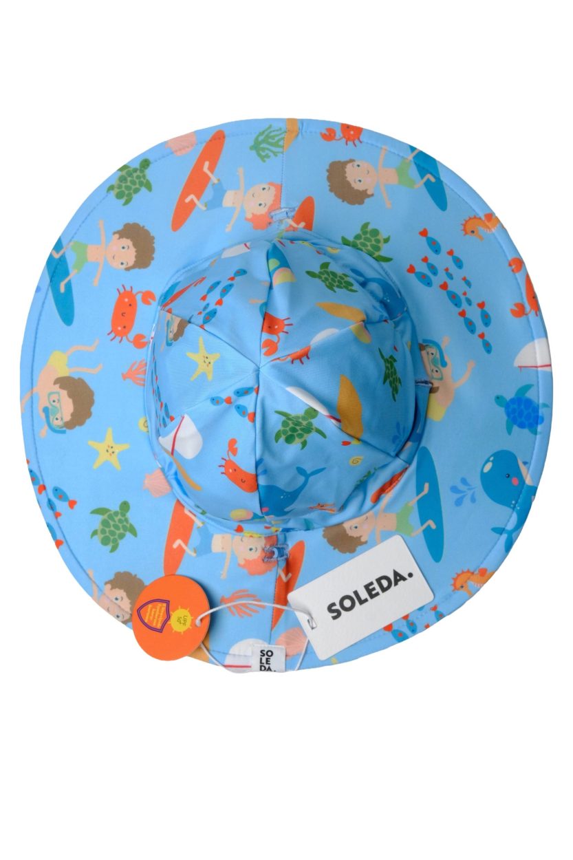UV korumalı, çift taraflı Soleda Şapkalar çocuklarınızı su ve deniz kenarı aktiviteleri sırasında güneşten korumak için tasarlandı. Çift taraflı ve ayarlanabilir ipli şapka bebeğinizin/çocuğunuzun başını, ensesini ve kulaklarını güneşe karşı en iyi şekilde korurken rüzgarda uçmasını engeller. Ayarlanabilir lastik detayı ile yeni doğan bebeklikten 6-7 yaşa kadar rahatlıkla kullanabilirsiniz. Güneşe karşı UPF 50+ koruma sağlayan özel kumaş çocuklarınızın kafasını ıslakken bile korur. Şapkamız çıkarılabilir ve ayarlanabilir bir sıkma ipine sahiptir. Böylece mayolarınıza ve kıyafetlerinize göre istediğiniz deseni seçebilirsiniz. Çabuk kuruma ve kullanım kolaylığı ile çocuklarımız özgürce güneşli havaların tadını çıkarabilir.