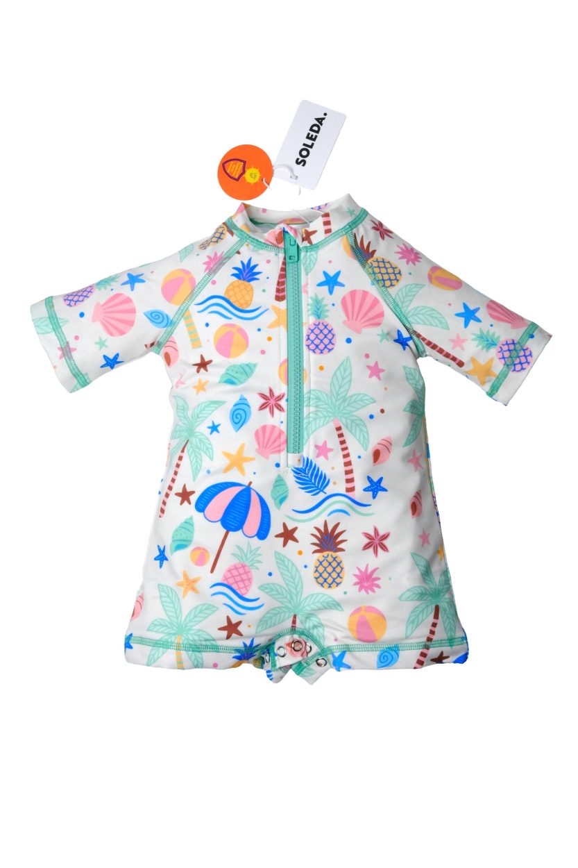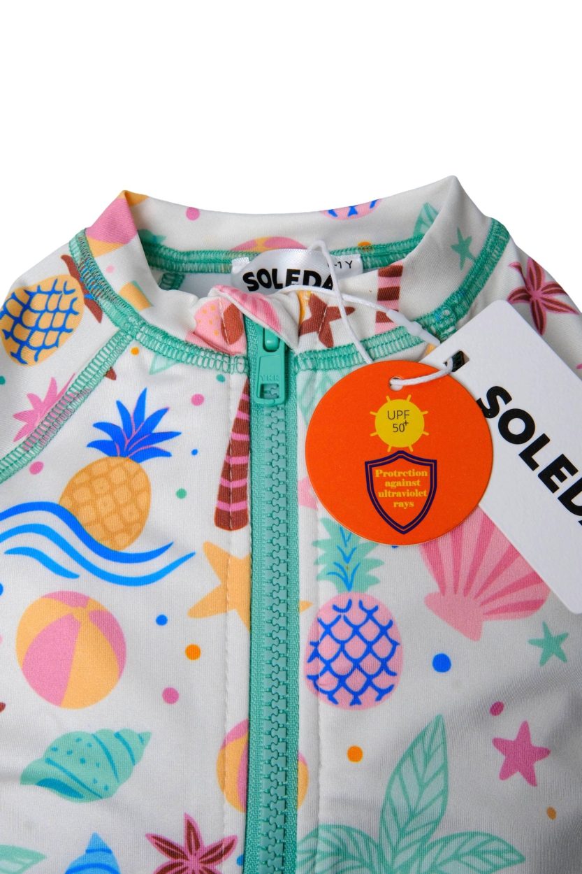 Soleda Sunsafe mayolar, eğlenceli ve fonksiyonel tasarımları ile çocuklarımızın plaj maceraları için mükemmel seçim! Hızlı kurayan yapısı ve önde bulunan kolay fermuarı ile rahat bir kullanım sunar. Sun Smart UPF 50+ kumaşı, zararlı UV ışınlarına karşı hem denizde hem de deniz kenarında yüksek koruma sağlar. Altta bulunan çıt çıtlarımız ise hem giydirirken hem de bez değiştirme ve tuvalet sırasında sizlere konfor sağlayacaktır. Kısa kollu ve yüksek yakalı tasarımı ekstra koruma sağlarken, esneklik için eklenen streç kumaşı ve astarı sayesinde rahat bir kullanım sunar. Soleda güneş gözlüklerimiz ile uyumlu birbirinden eğlenceli tasarımlarımıza çocuklarımız bayılacak.